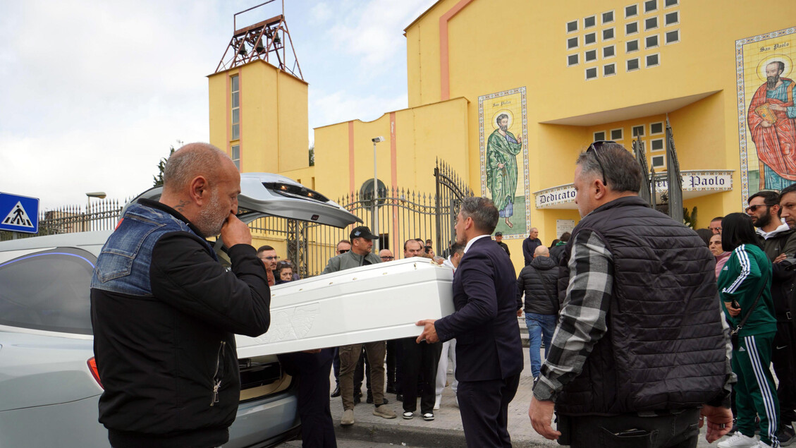 Una bara bianca e corone di fiori per l’addio a Fabio vittima innocente